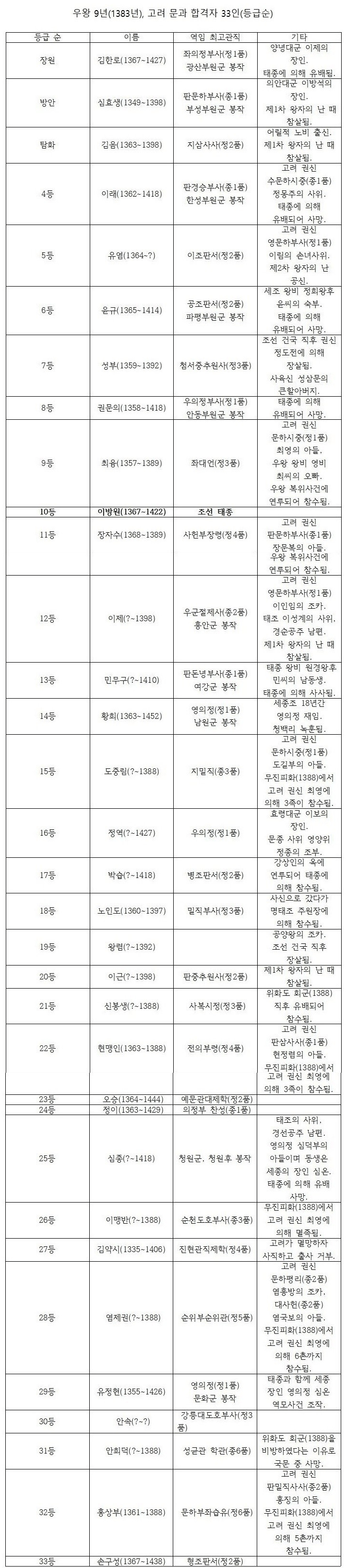 [유머] 태종이방원의 과거급제 동기들