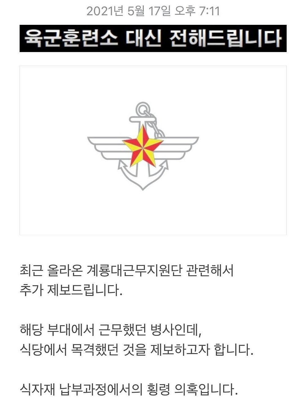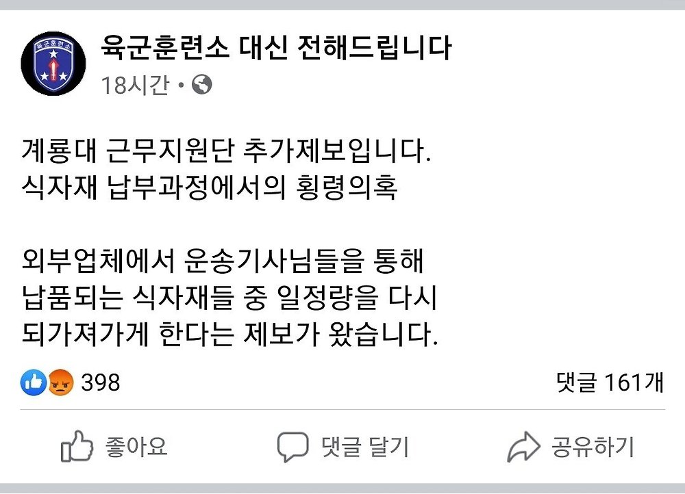 [유머] 계룡대 식자재 납부 과정에서의 횡령 의혹