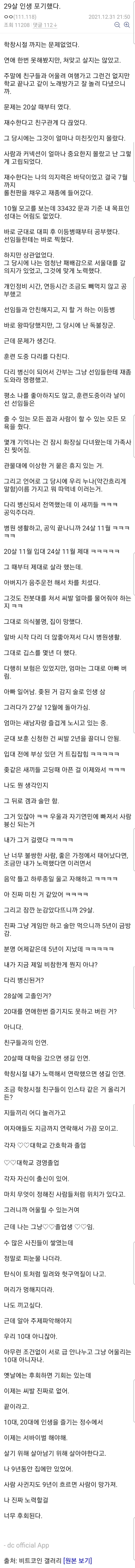 [유머] 인생을 포기했다는 29살 디씨인