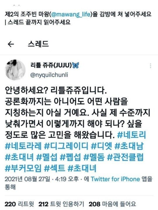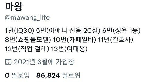 - 현재 마왕의 트위터는 폐쇄되었고, 모든 게시글이 삭제된 상태