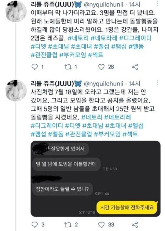 1. 트위터에서 소위 "섹트"라 불리는 검색어를 통해 성행위를 하는 성향자들의 모임이 있음