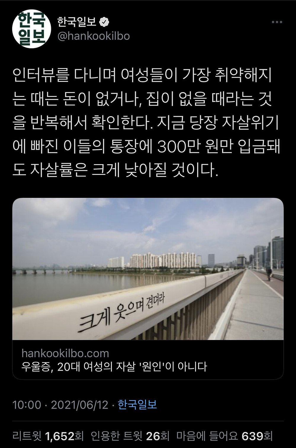 2020년 통계로는 남자 자살률이 2배는 높다