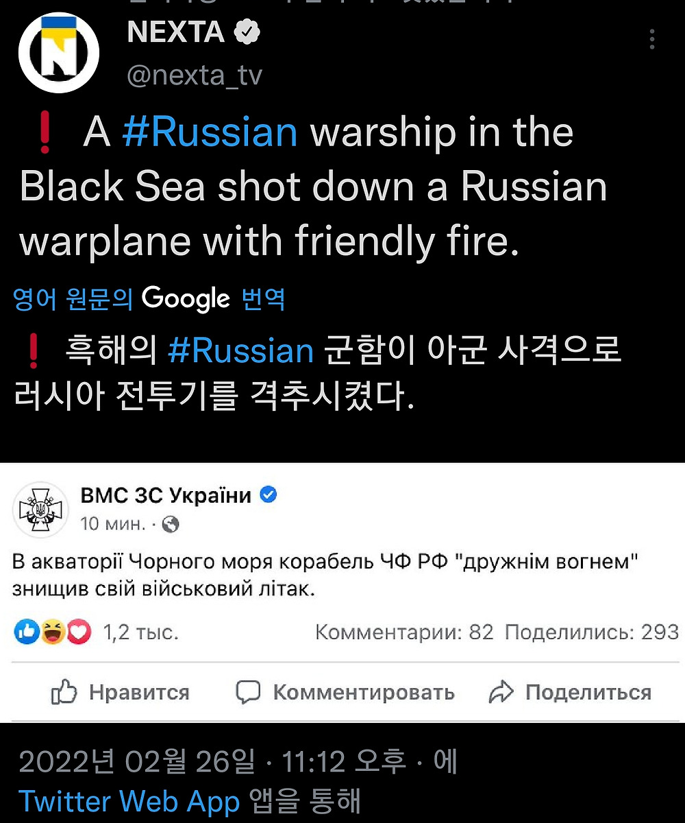 [유머] 흑해에서 러시아 군함이 전투기 격추