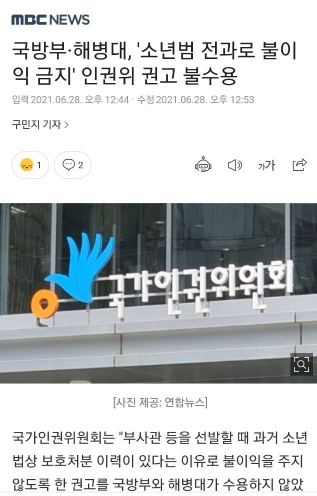 [유머] 국방부/해병대, 인권위 권고 무시