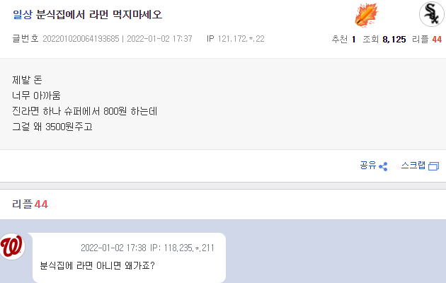 [유머] 분식집 라면 논쟁