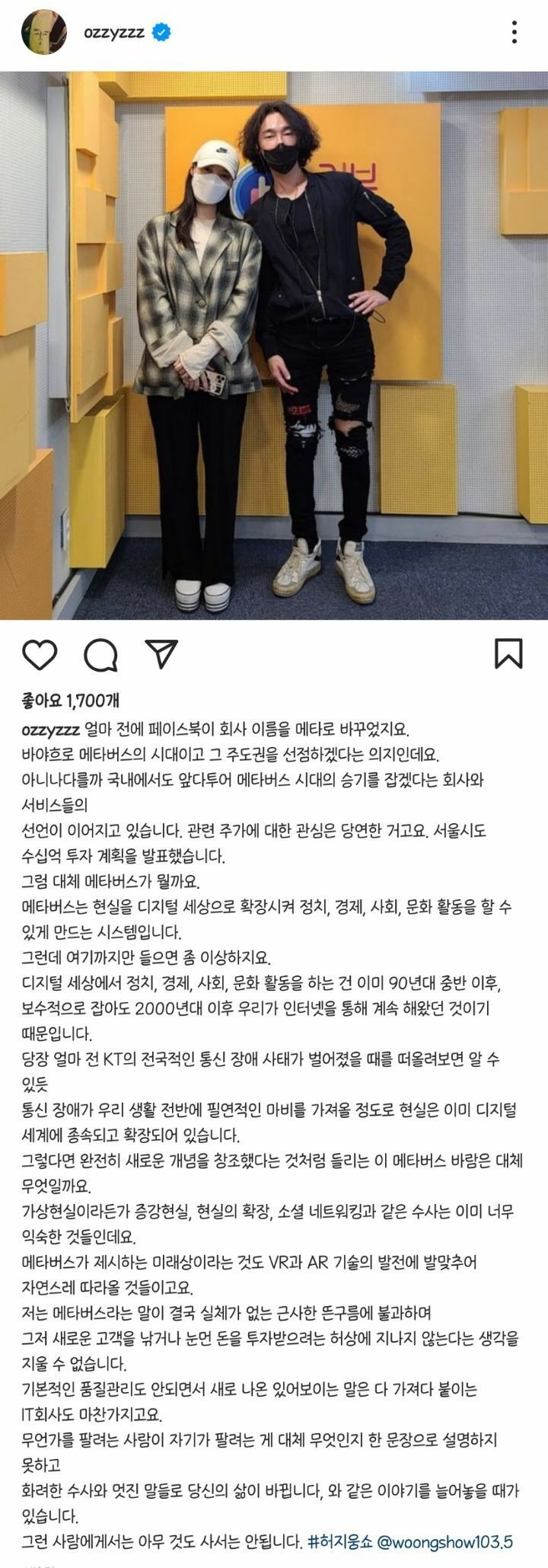 [유머] 허지웅 인스타 메타버스란 대체 뭘까?