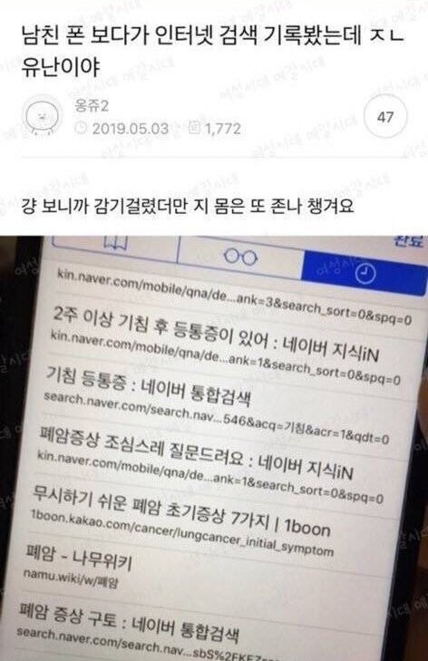 [유머] 남친 폰 보다가 인터넷 검색 기록 봤는데 ㅈㄴ유난이야