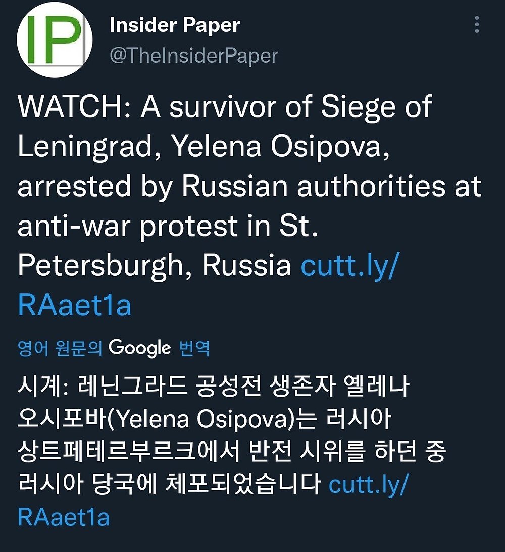[유머] 러시아) 반전시위 90세 할머니 [레닌그라드(스탈린그라드) 생존자] 연행