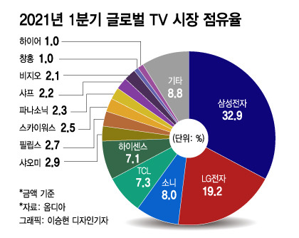 [유머] 2021년 1분기 전세계 TV시장 점유율
