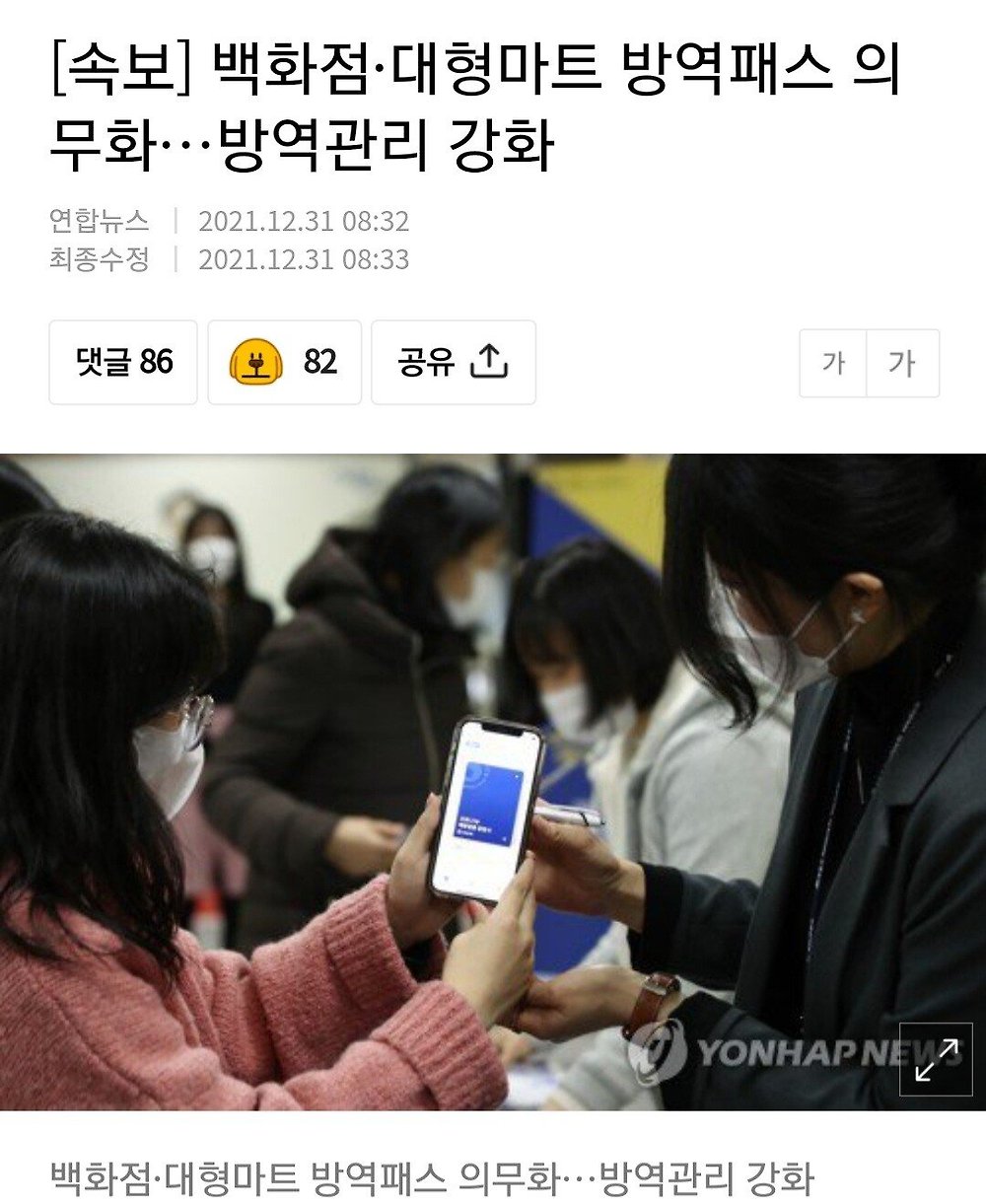 [유머] (속보) 백화점.대형마트 방역패스 의무화