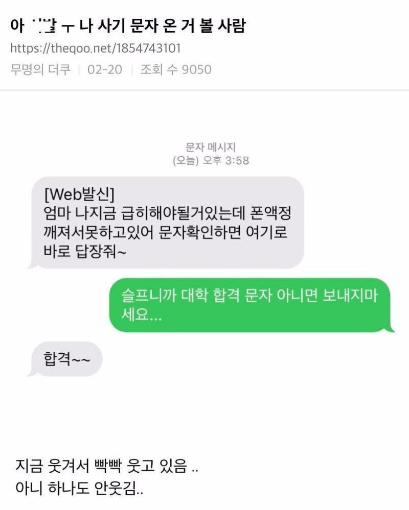 [유머] 대학 합격문자 아니면 보내지 마세요