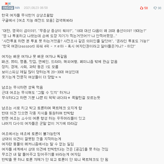 [유머] 여초 뼈 때리는 찬반좌