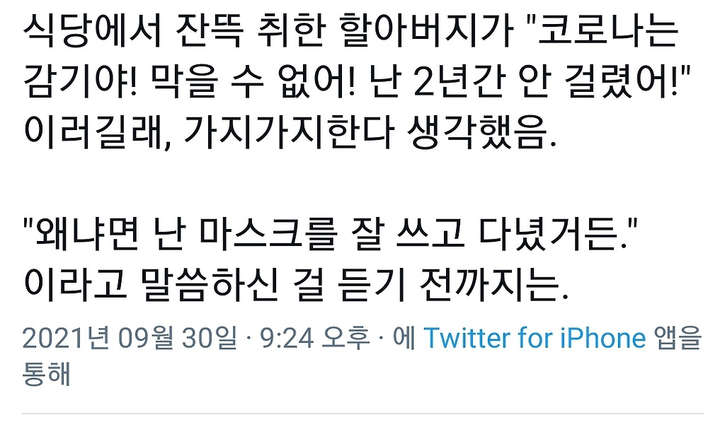 [유머] 식당에서 잔뜩 취해 코로나가 감기라고 하는 할아버지