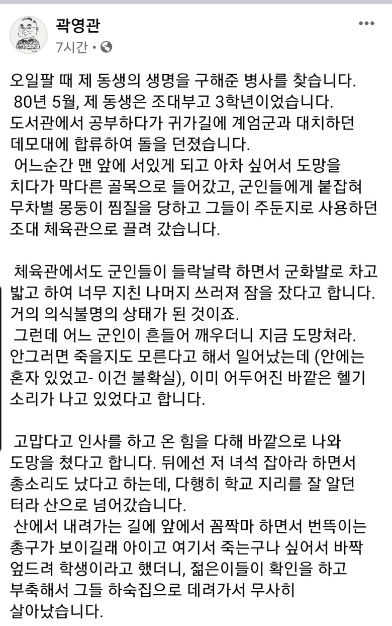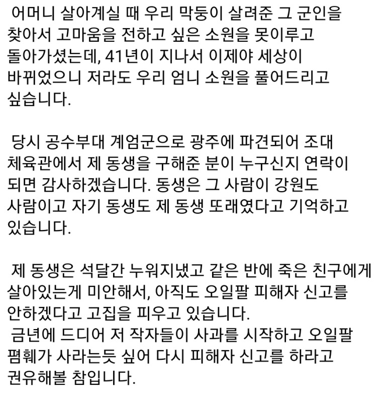 [유머] 5.18때 제 동생의 생명을 구해 준 병사를 찾습니다.