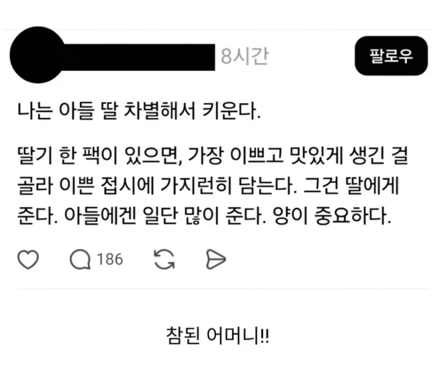 [유머] 아들 딸을 차별하는 엄마
