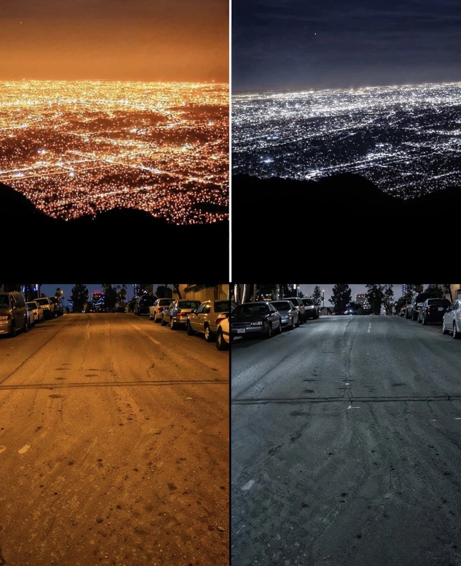 가로등 14만개를 LED로 교체한 LA 풍경 전과 후