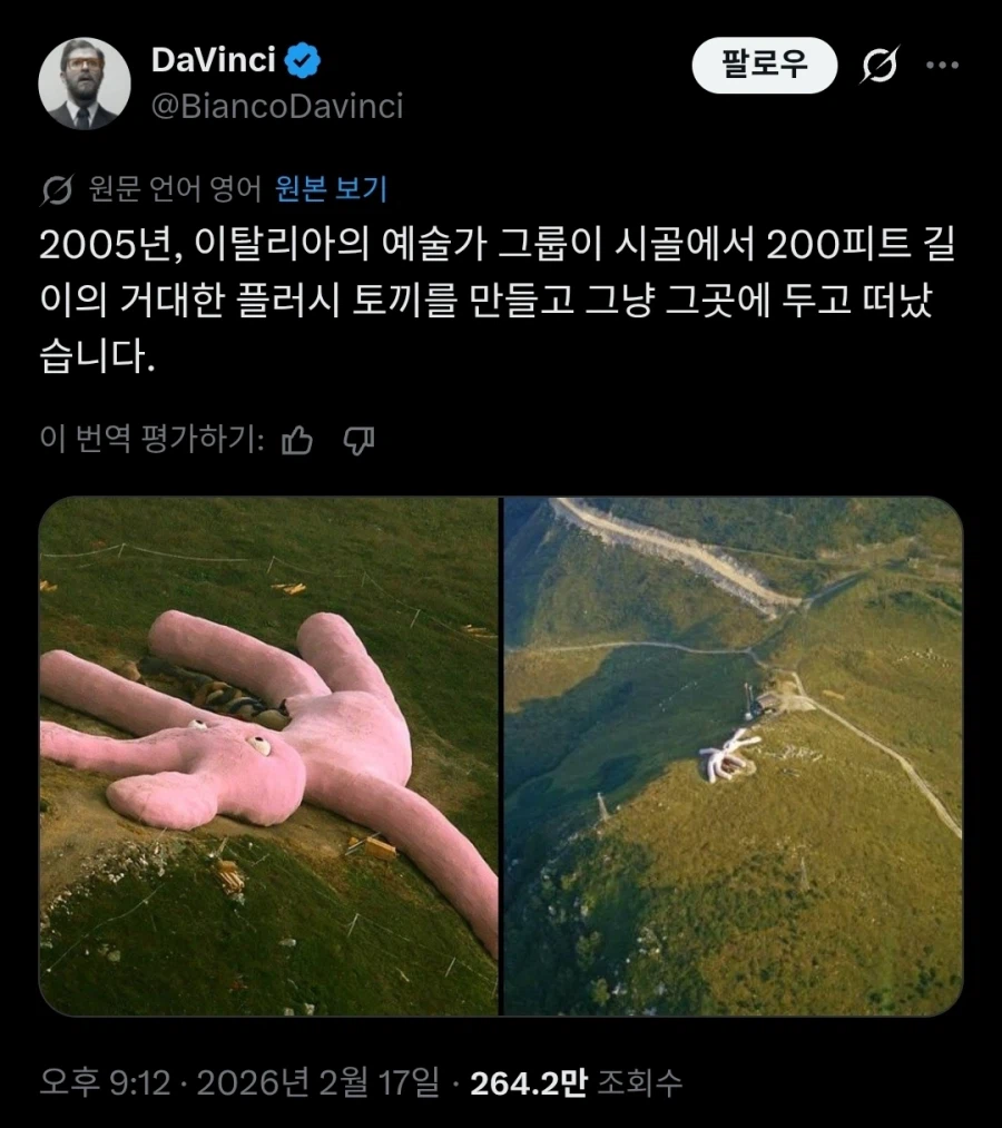 [유머] 2005년 이탈리아 시골에 설치되었던 거대토끼 인형