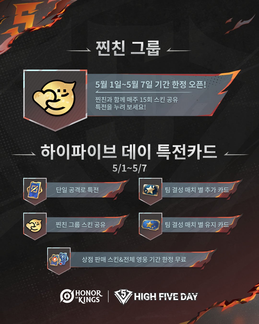 하이파이브 데이의 경우 5월 1일 오픈 기준으로 전 영웅 / 전 스킨 무료 체험,