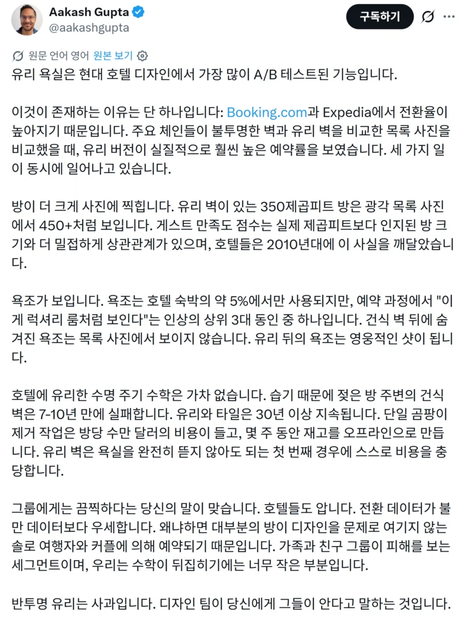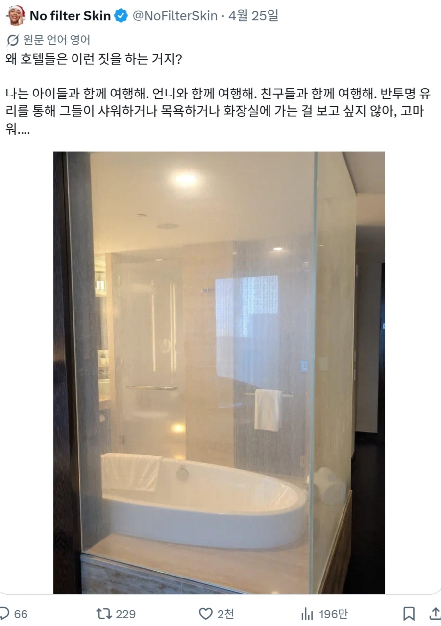 요즘 호텔에 유리 욕실이 많은 이유