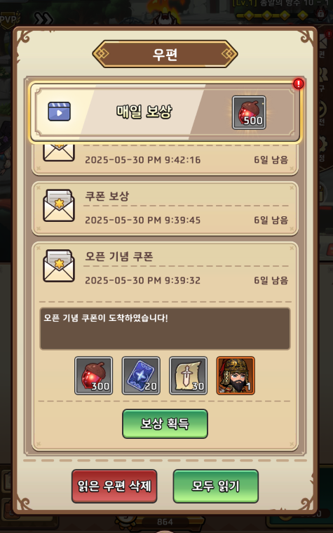 현재 각종 미션을 통해 매우 많은 재화를 얻을 수 있고, 소환 역시 많이 지원하기 때문에 매우 빠른 성장이 가능한 상태입니다. 방치형인만큼 급할 필요 없으니 한 번 플레이해보시기 바랍니다 ㅎ