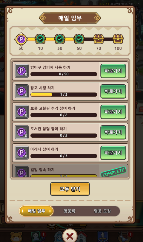 또 일일미션을 통해추가 보상을 받을 수 있으니 잊지 말고 꼭 참여하시기 바랍니다. 보상 획득하면 빠른 성장이 가능합니다.