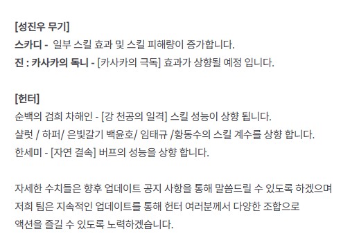 유저들이 꾸준히 언급하던 밸런스에 대한 부분도 계속 개선 중이거든요