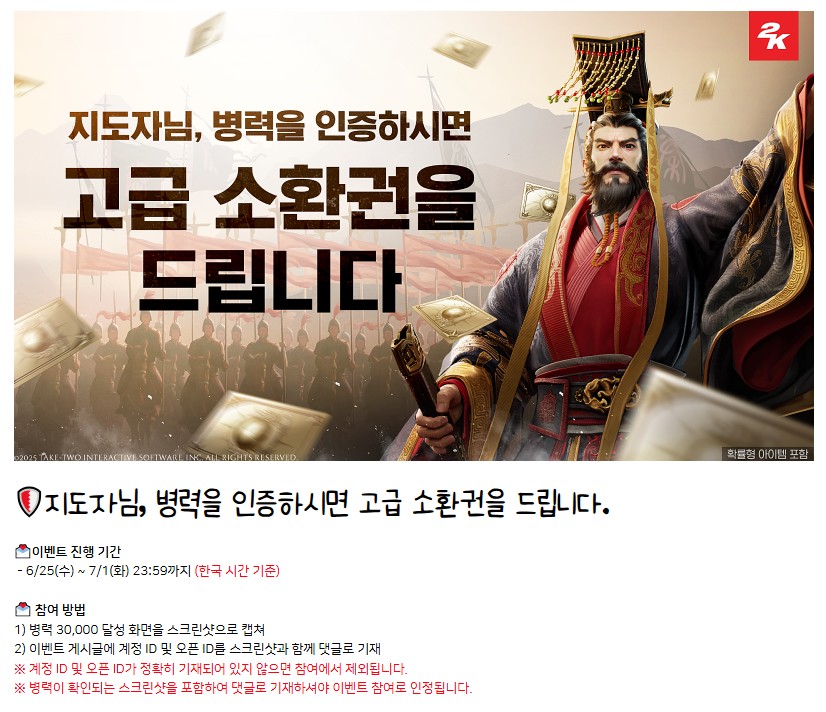 병력 3만 달성 스샷 찍어서 인증하면 되고 이거 고급 소환권 준다니까