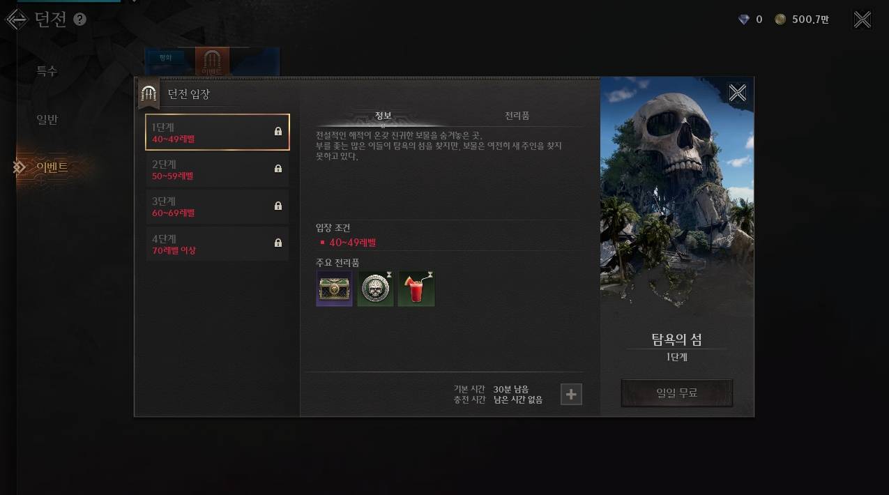 40레벨 부터 입장 가능한 던전이라 조금만 더 올리면 들어갈 수 있어요