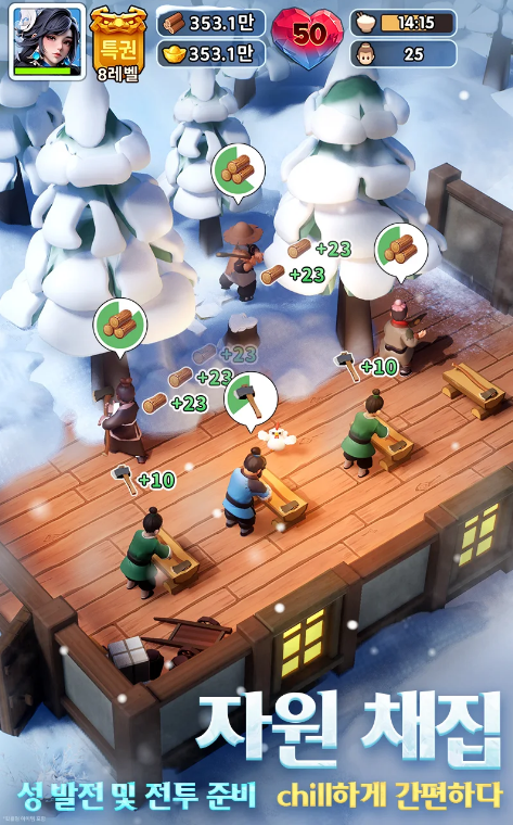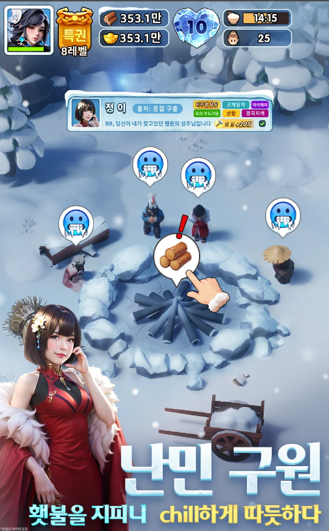 츄워:삼국이 드디어 론칭을 했습니다. 많은 유저들이 플레이 중에 있는데요. 빙하기가 찾아온 가상의 삼국시대를 배경으로 하는 전략 시뮬레이션 게임입니다.