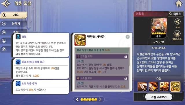 애 패시브 스킬이 우장에 속공 비례 공격력 증가, 효과 적중 증가로