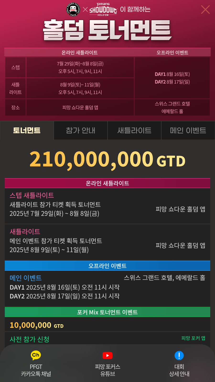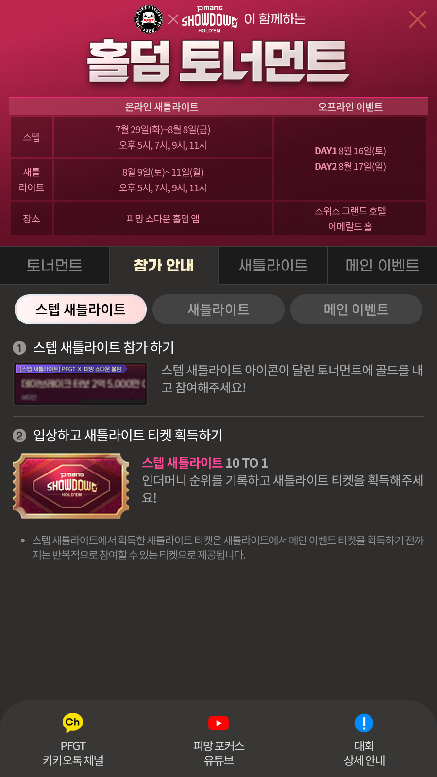내일 29일부터 피망 쇼다운 홀덤 새틀라이트 스텝 시작입니다