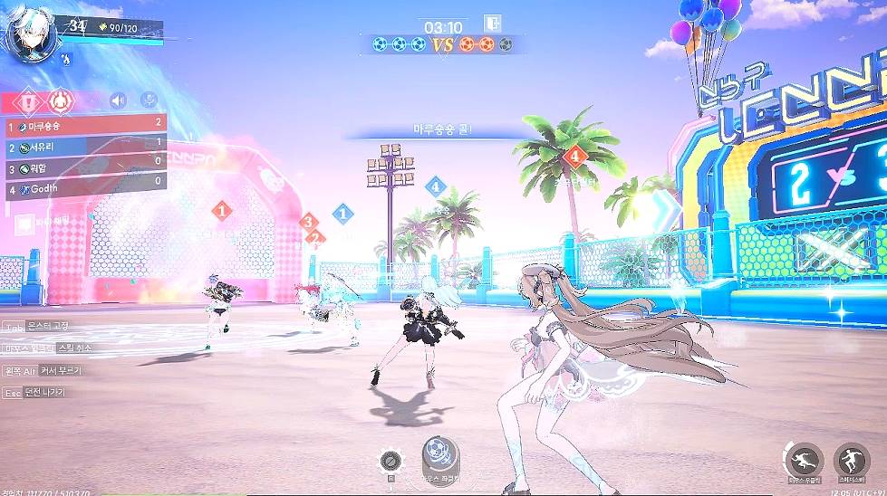 이거 거대한 공으로 하는 비치 사커 그런 느낌인데 먼저 3점 넣은 팀이 이기는 방식이더라구요