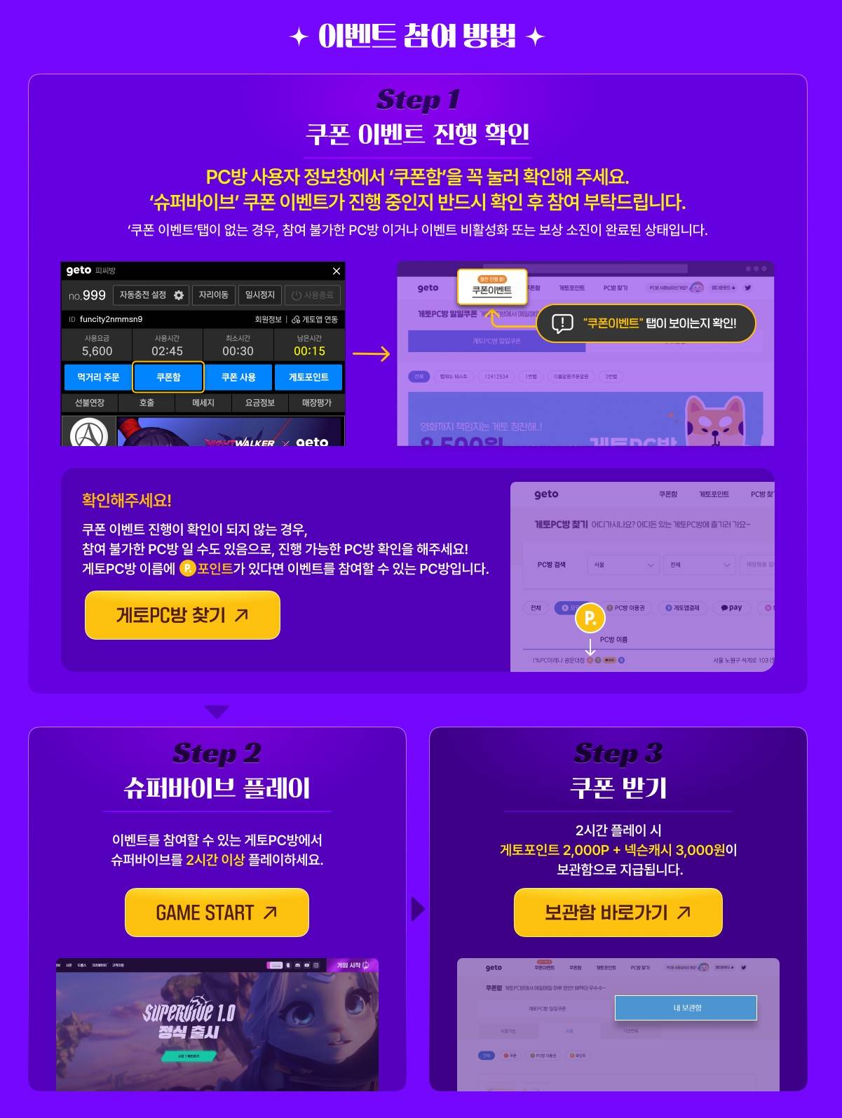 슈퍼바이브 지금 게토 피시방 이벤트 진행 중인데
