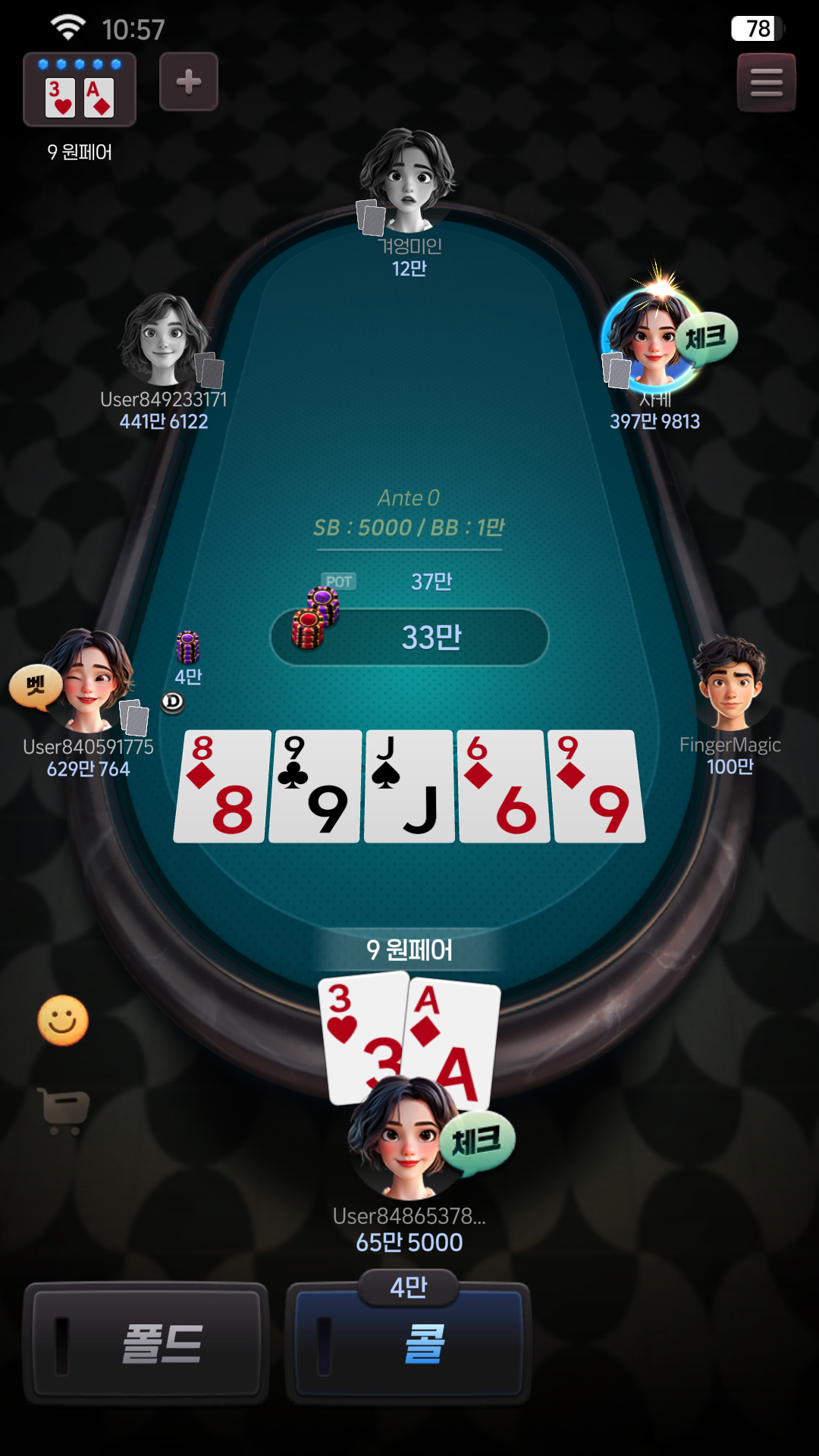 피망 쇼다운홀덤 스텝 새틀라이트 참가 전에 워밍업 하고 있습니다 ㅋㅋ