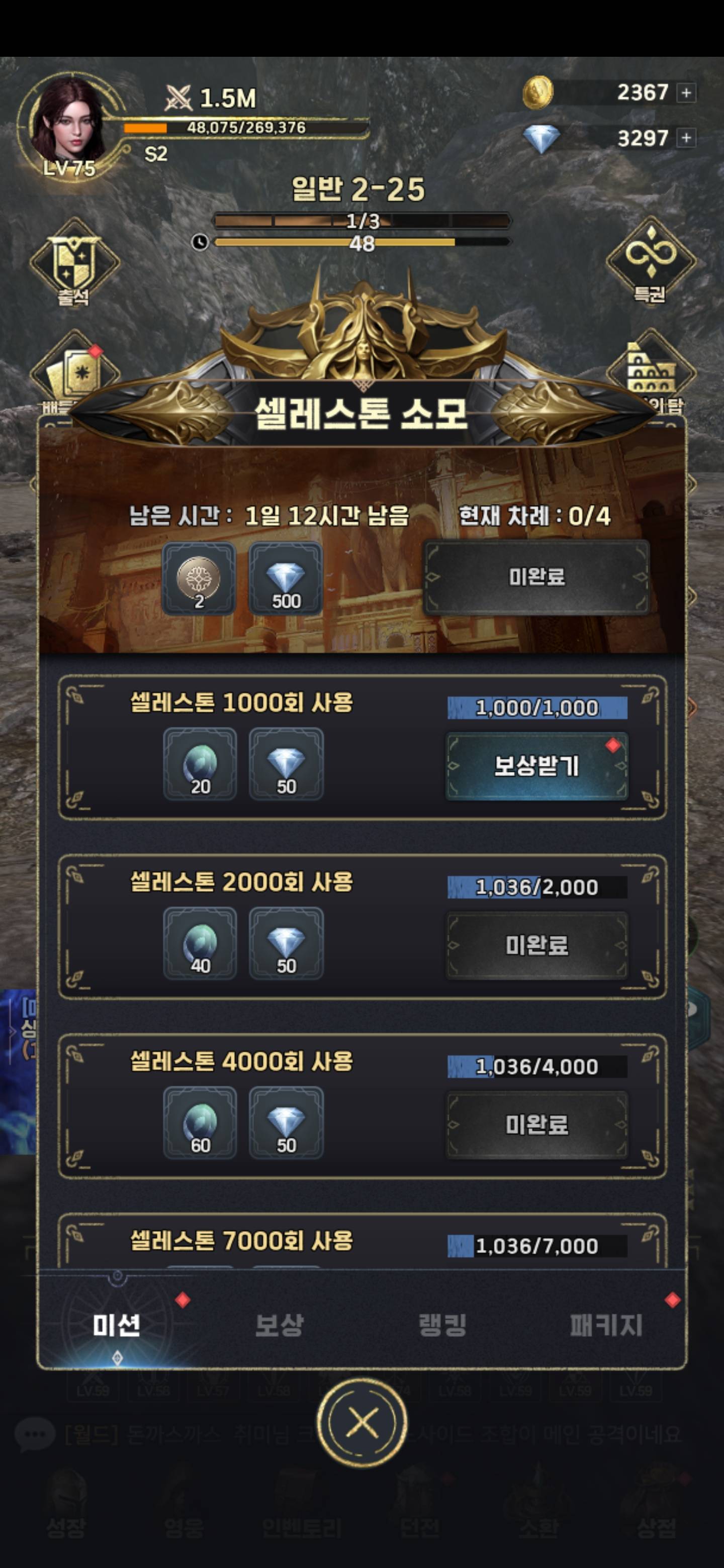 인게임 이벤트로는 장비와 스킬 소환 및 셀레스톤 소모 이벤트가 진행 중입니다. 장비와 스킬, 셀레스톤 소모를 하면 할수록 재화와 다이아를 얻을 수 있어서 무과금으로도 충분히 게임 진행에 무리가 없는 것 같더군요. 여기에 더해 소환 횟수에 따라 랭킹도 정해지며 1등은 무려 다이아 3,000개와 골드 티켓 10장을 더 얻을 수 있다는 점. 1등부터 40등까지 다이아에 골드 티켓을 받을 수 있고 41등부터 101등 이상까지 다이아를 얻을 수 있으니까 최대한 게임을 하며 많이 참여해야겠죠?