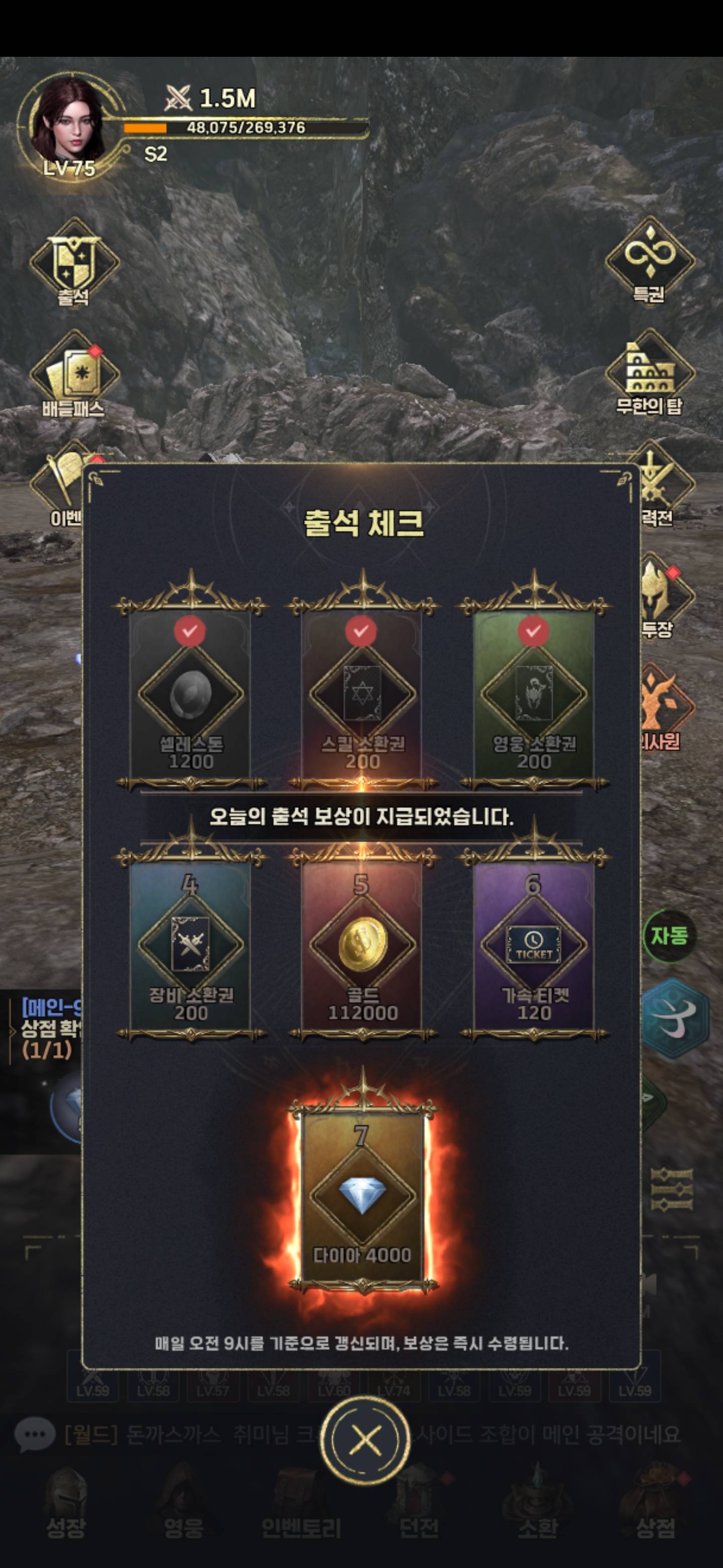 출석 체크만 해도 스킬/영웅/장비 소환권에 골드, 가속 티켓과 7일 모두 출석 시 다이아까지 얻어갈 수 있으며 라운지 이벤트도 진행 중으로 라운지 댓글 이벤트 게시글 내 축하 또는 응원의 댓글과 플레이어 ID도 함께 작성 시 랜덤으로 추첨을 통해 다이아 3,000개를 지급한다고 합니다.