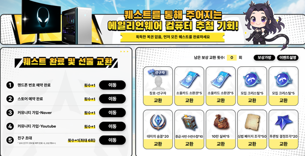 사전예약 이벤트 중에 에일리언 웨어 pc를 주는 게 있다는 거...