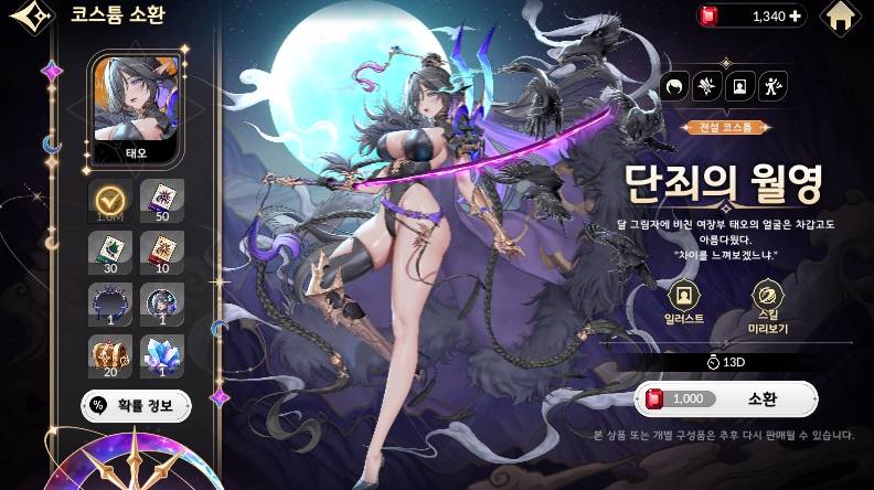 태오 TS 단죄의 월영 코스튬 나왔어요