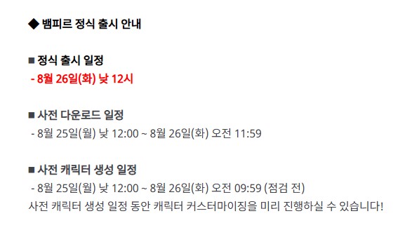 사전 다운로드도 일정 같이 공개됐는데 사전 다운은 하루 전날인