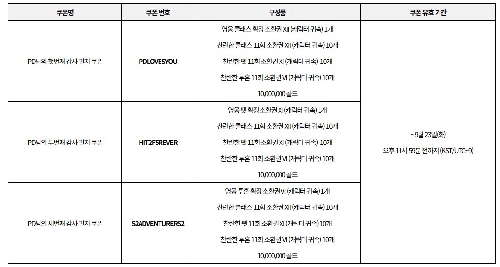 그리고 한국 서버 유저들한테는 PD 쿠폰도 뿌려졌거든여