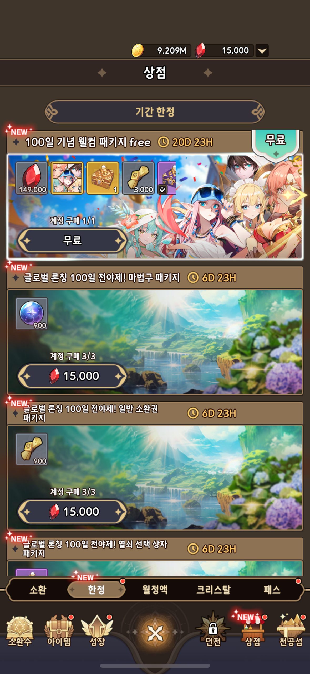 레전드 소환수도 뽑을 수 있구요ㅋㅋㅋㅋ 상점-한정에 보시면 웰컴 패키지 보이시나요?