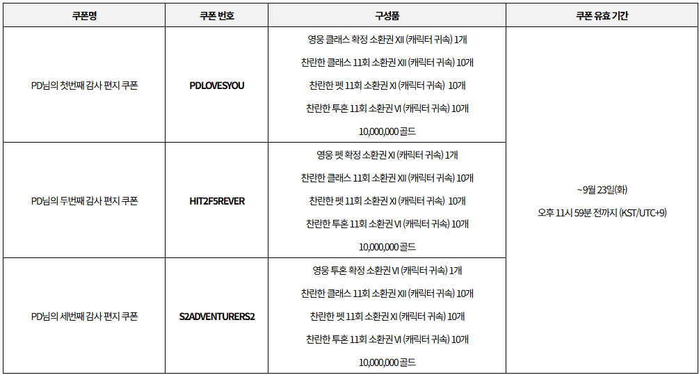 그리고 PD의 감사 편지 쿠폰도 준비해놔서