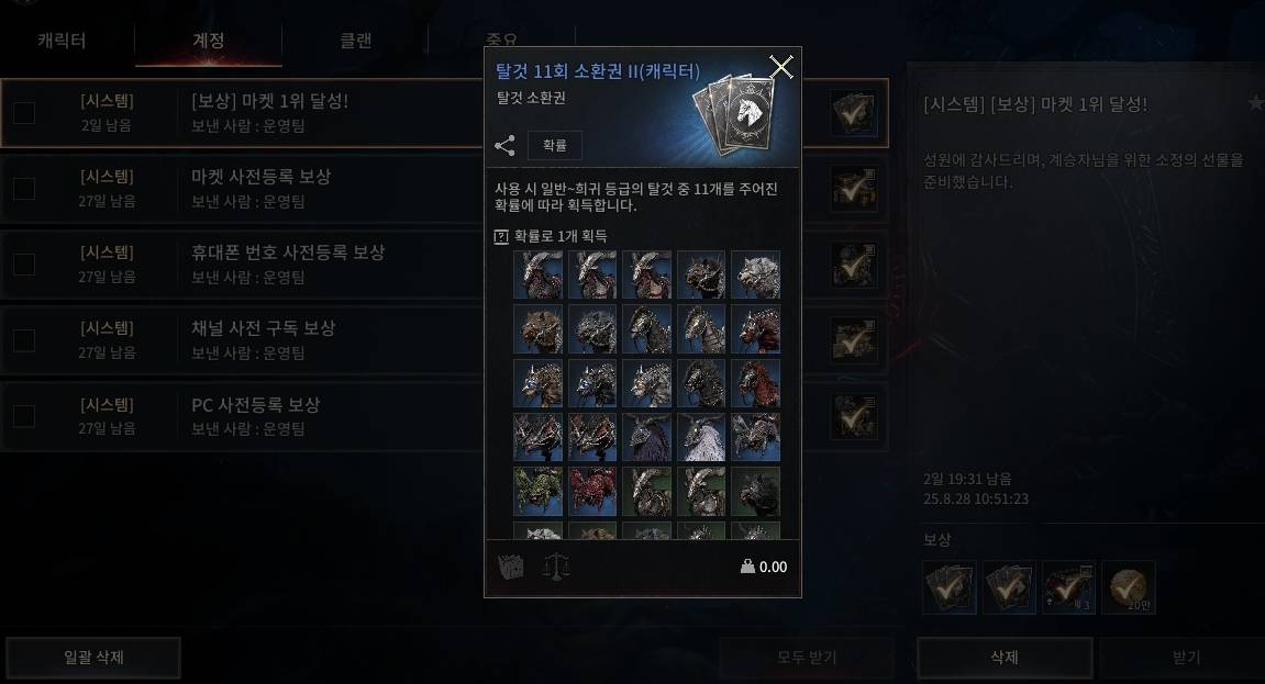 형상 11회소환권 / 탈것 11회 소환권 / 순수한 혈석 선택상자 / 골드