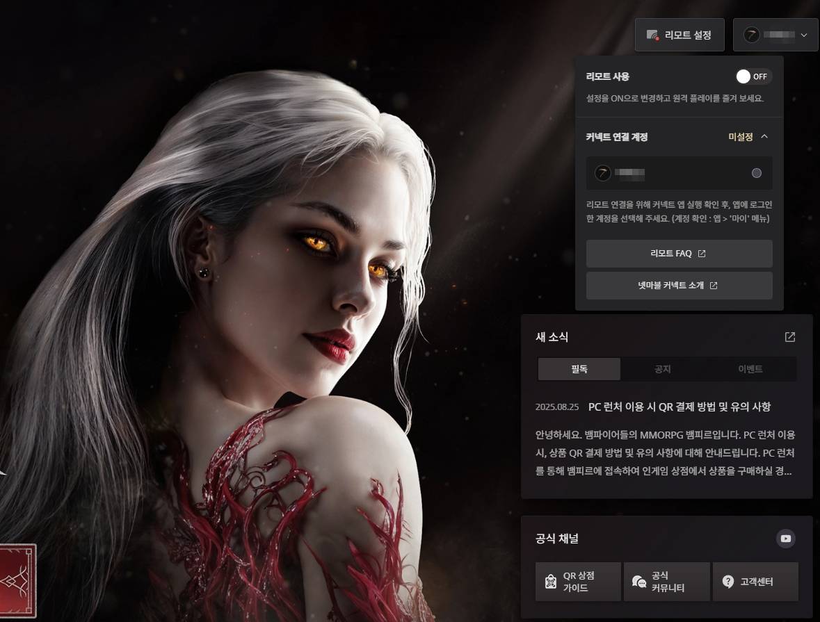 넷마블 커넥트 통해서 pc 클라이언트 원격으로 플렝할 수 있는 시스템 구축해서