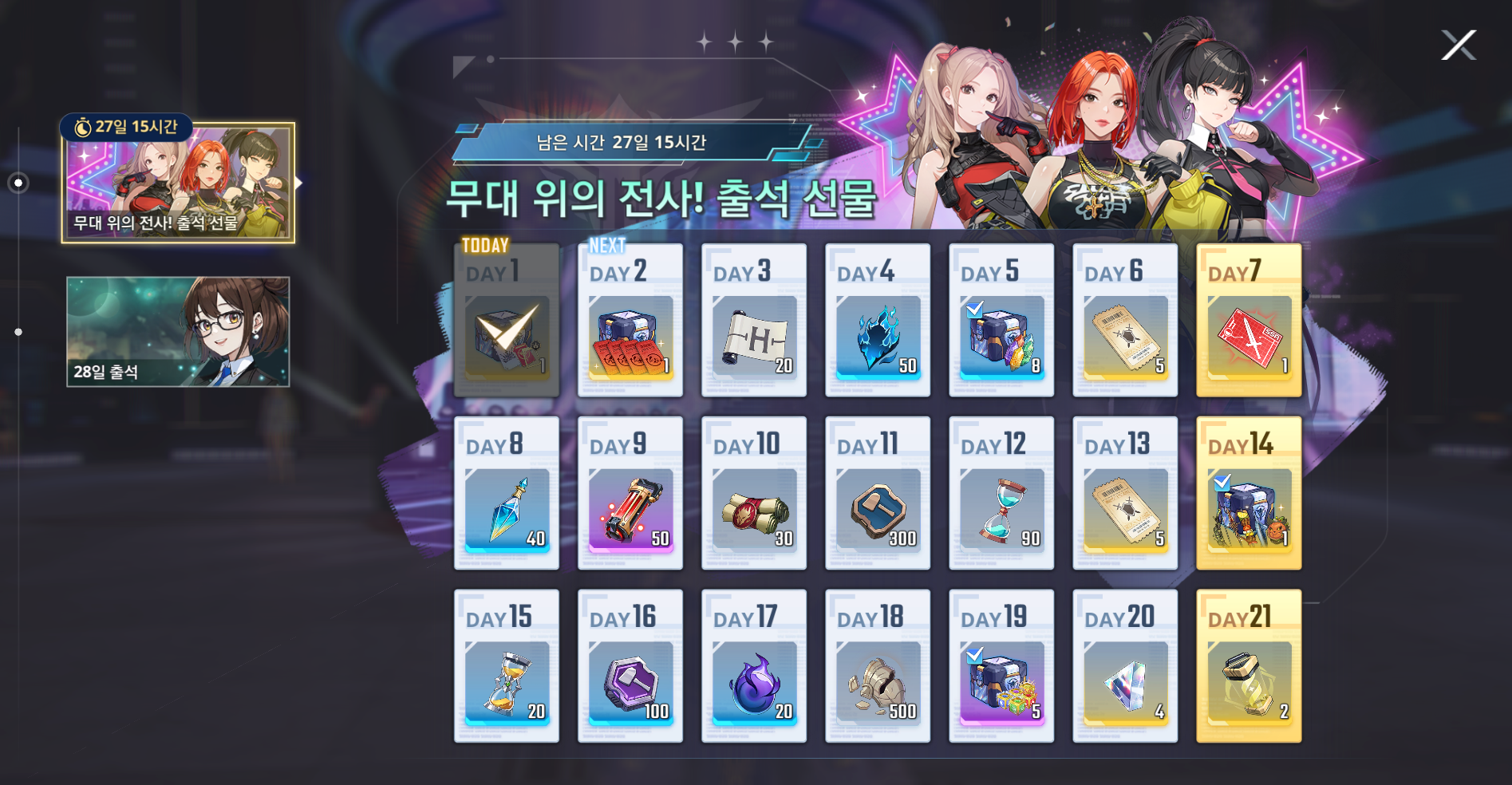 그리고 출석이벤트로 접속하자마자 선택권하나 주고 시작해요