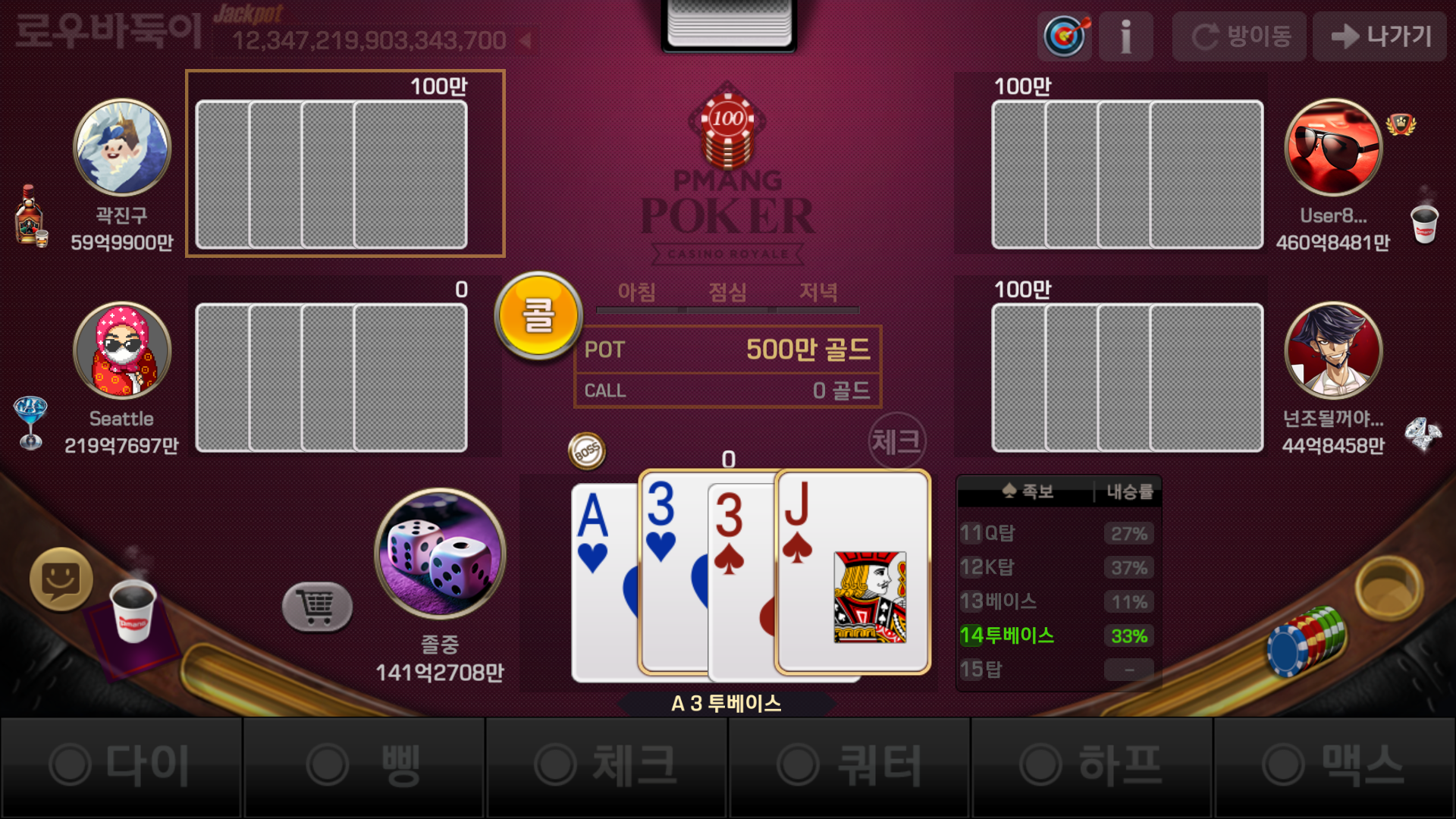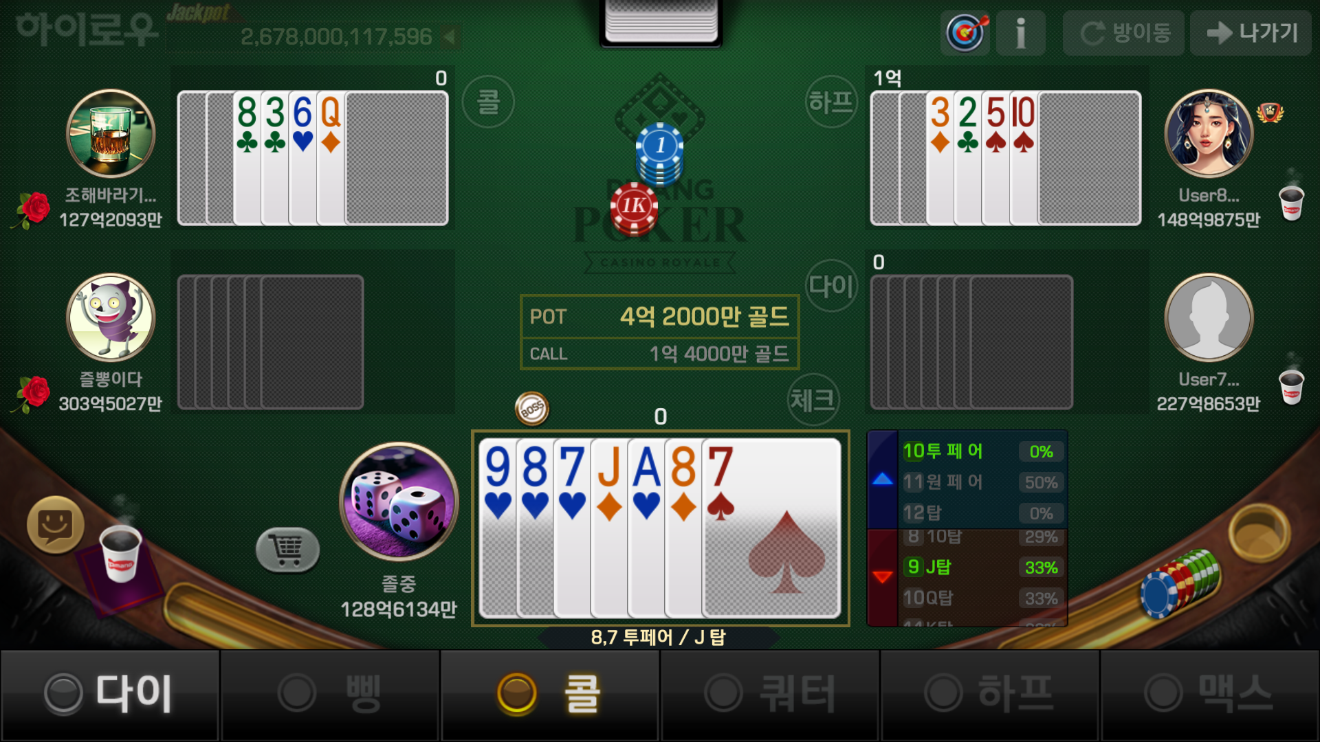 오늘은 7포커 대신 로우바둑이와 하이로우로