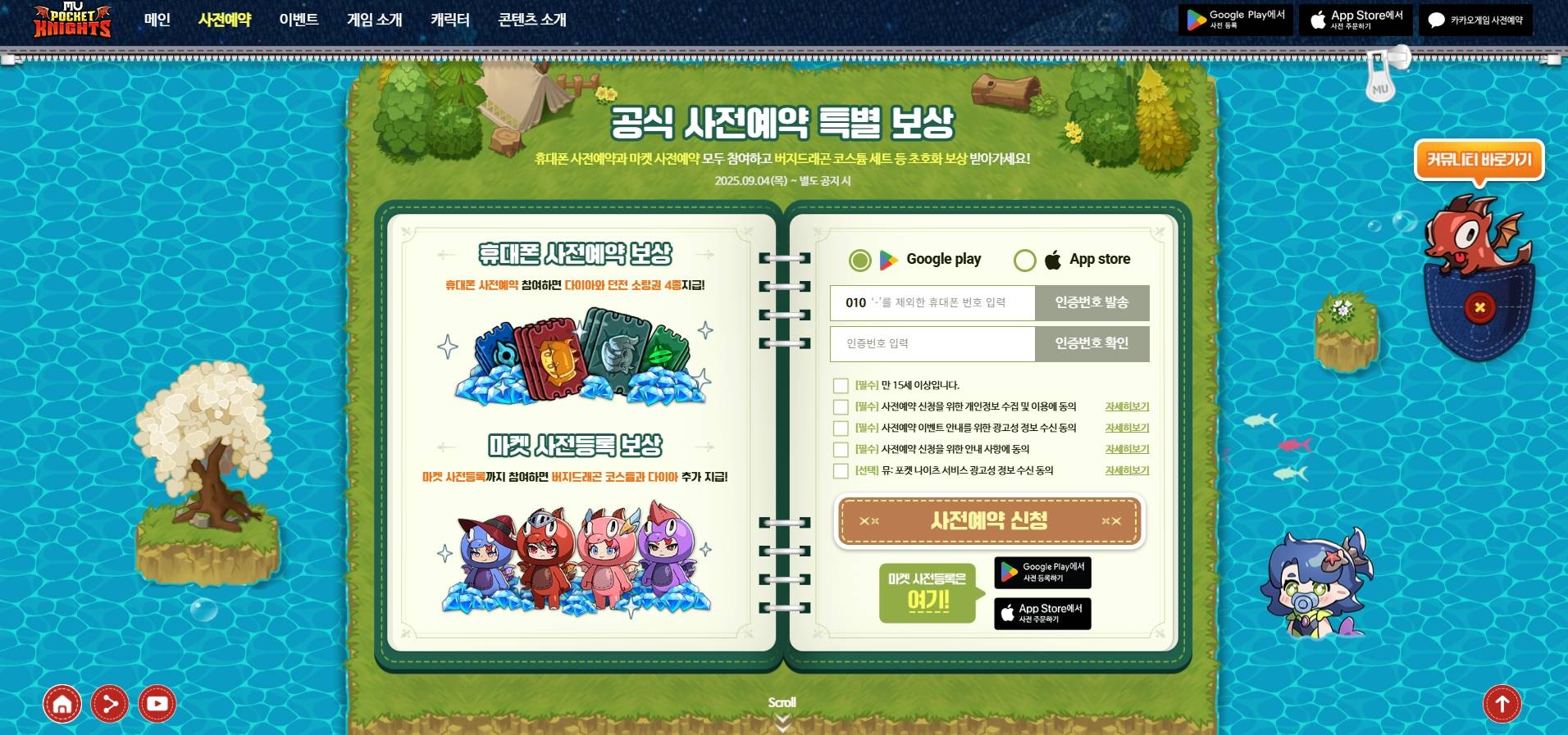 마켓 사전예약 보상이랑 휴대폰 사전예약 등록 보상이 따로 나뉘어져 있어서