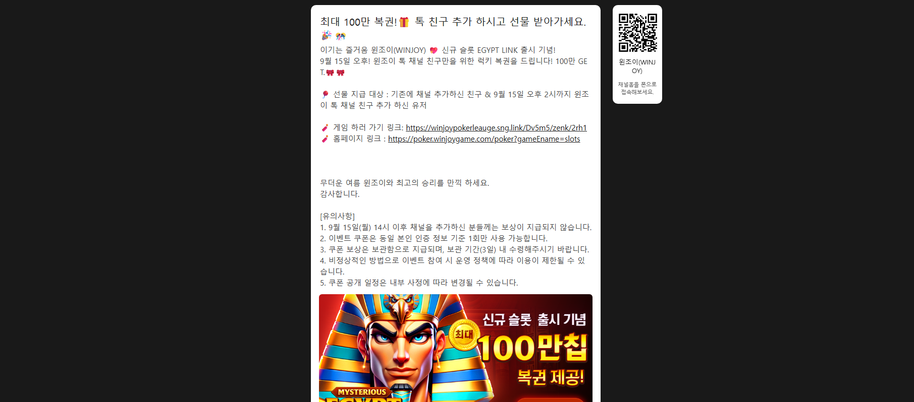 윈조이포커 지금 카톡 채널 친구 추가 해두면