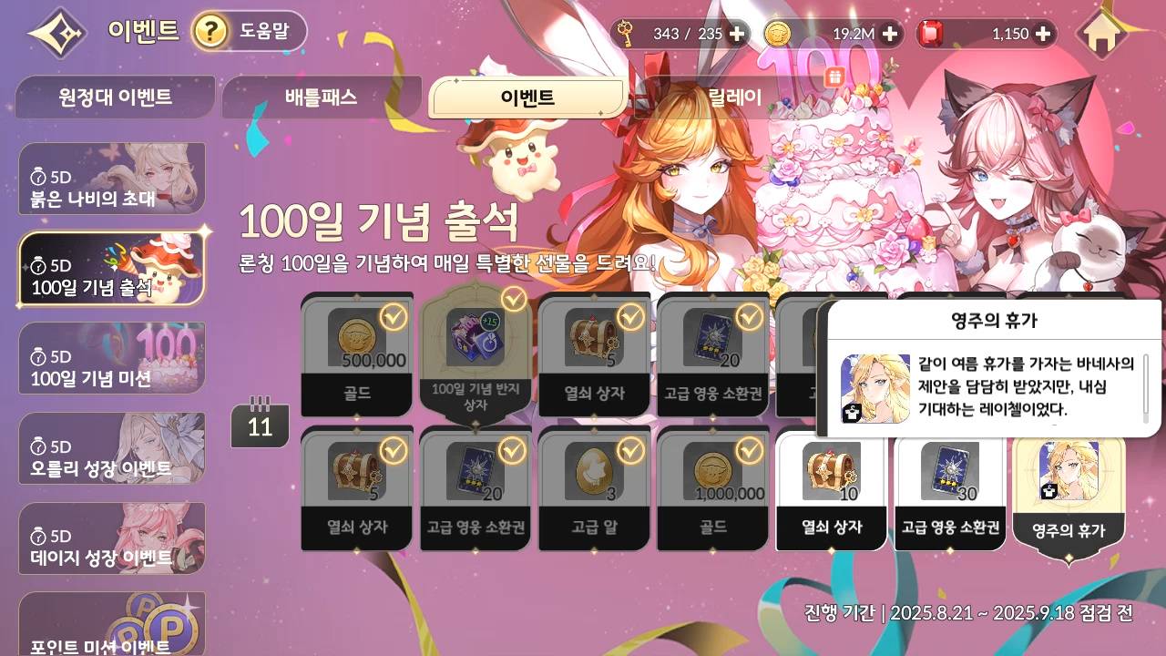 이번에 100일 이벤트 보상 야무지게 받고 있는데