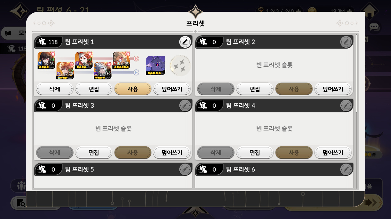 이번에 유저들이 꾸준히 말하던 팀 편성 프리셋 시스템 추가 됐는데